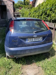 28.04.2026r godz. 09:00 – I termin licytacji ruchomości: Ford Focus Rok produkcji: 2001 Rejestracja: KRA89854 Silnik: poj: 1388 cm3, moc: 55 KM, rodz. paliwa: BENZYNA VIN: WF0AXXGCDA1M32454. Suma oszacowania: 1 000,00 zł. cena wywołania: 750,00 zł